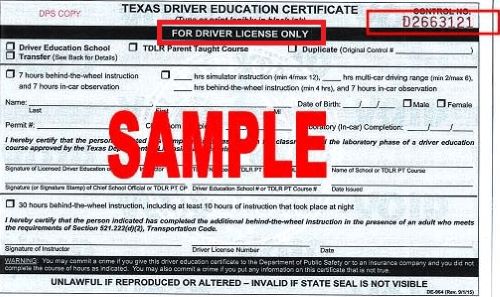 Driver’s Ed Certificate DE-964